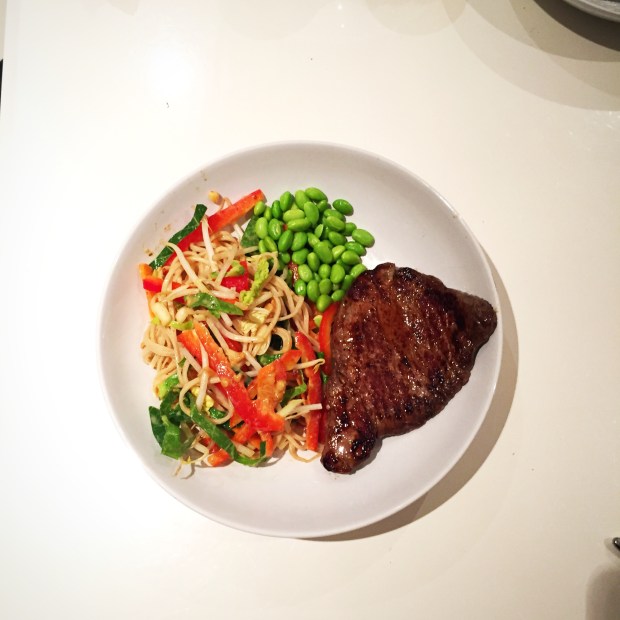 This salad is totally lush on its own or a great accompaniment to any meat or fish. I used it for dinner and then lunch the next day. As you can see steak was my chosen meat….❤